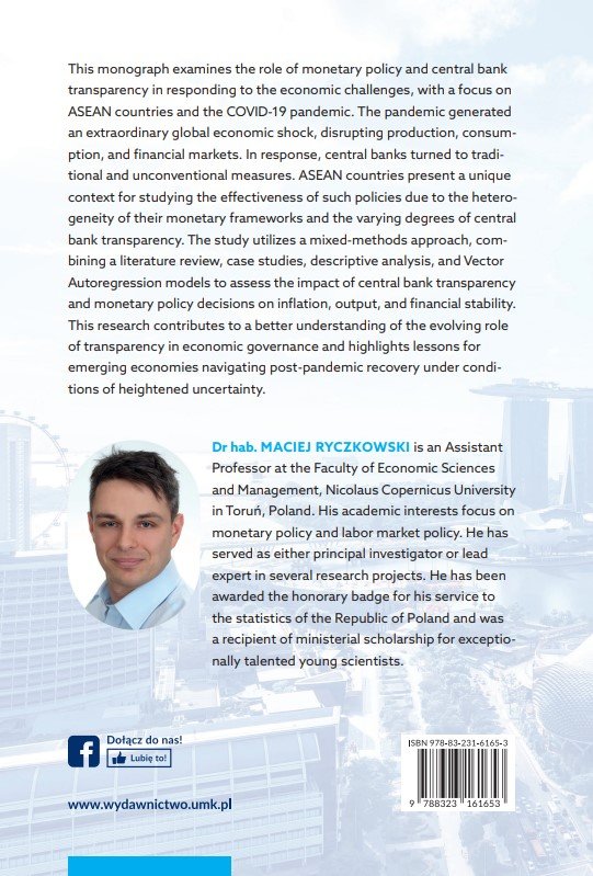 - Monetary Policy Actions and Central Bank Transparency. Insights from ASEAN Countries and Beyond, with a Focus on the COVID-19 Era- Strategia bezpośredniego celu inflacyjnego w polityce monetarnej współczesnych banków centralnych. Teoria i praktyka