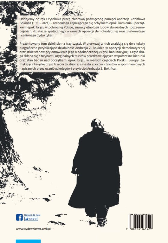 Oddajemy do rąk Czytelnika pracę zbiorową poświęconą pamięci Andrzeja Zdzisława Bokińca (1961–2021) – archeologa zajmującego się schyłkiem epoki kamienia i początkiem epoki brązu w północnej Polsce, znawcy etnologii ludów starożytnych i pozaeuropejskich, działacza społecznego w ramach opozycji demokratycznej oraz znakomitego i cenionego dydaktyka.