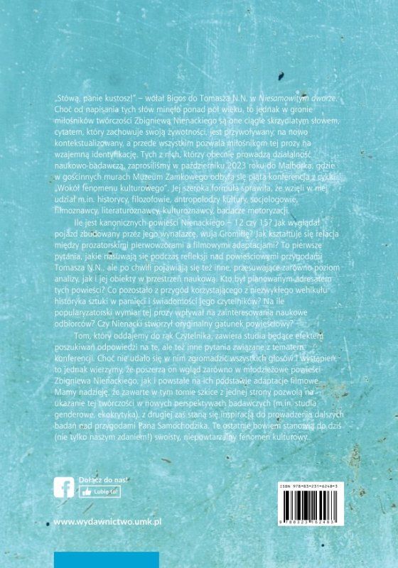 Ile jest kanonicznych powieści Nienackiego – 12 czy 15? Jak wyglądał pojazd zbudowany przez wynalazcę, wuja Gromiłłę? Jak kształtuje się relacja między prozatorskimi pierwowzorami a filmowymi adaptacjami? – to pierwsze pytania, jakie nasuwają się podczas refleksji nad powieściowymi przygodami Tomasza N.N. Ale po chwili pojawiają się też inne, przesuwające zarówno poziom analizy, jak i jego obiekty w przestrzeń naukową. Kto był planowanym adresatem tych powieści? Co pozostało z przygód korzystającego z niezwykłego wehikułu historyka sztuki w pamięci i świadomości jego czytelników? Na ile popularyzatorski wymiar tej prozy wpływał na zainteresowania naukowe odbiorców? Czy Nienacki stworzył oryginalny gatunek powieściowy?